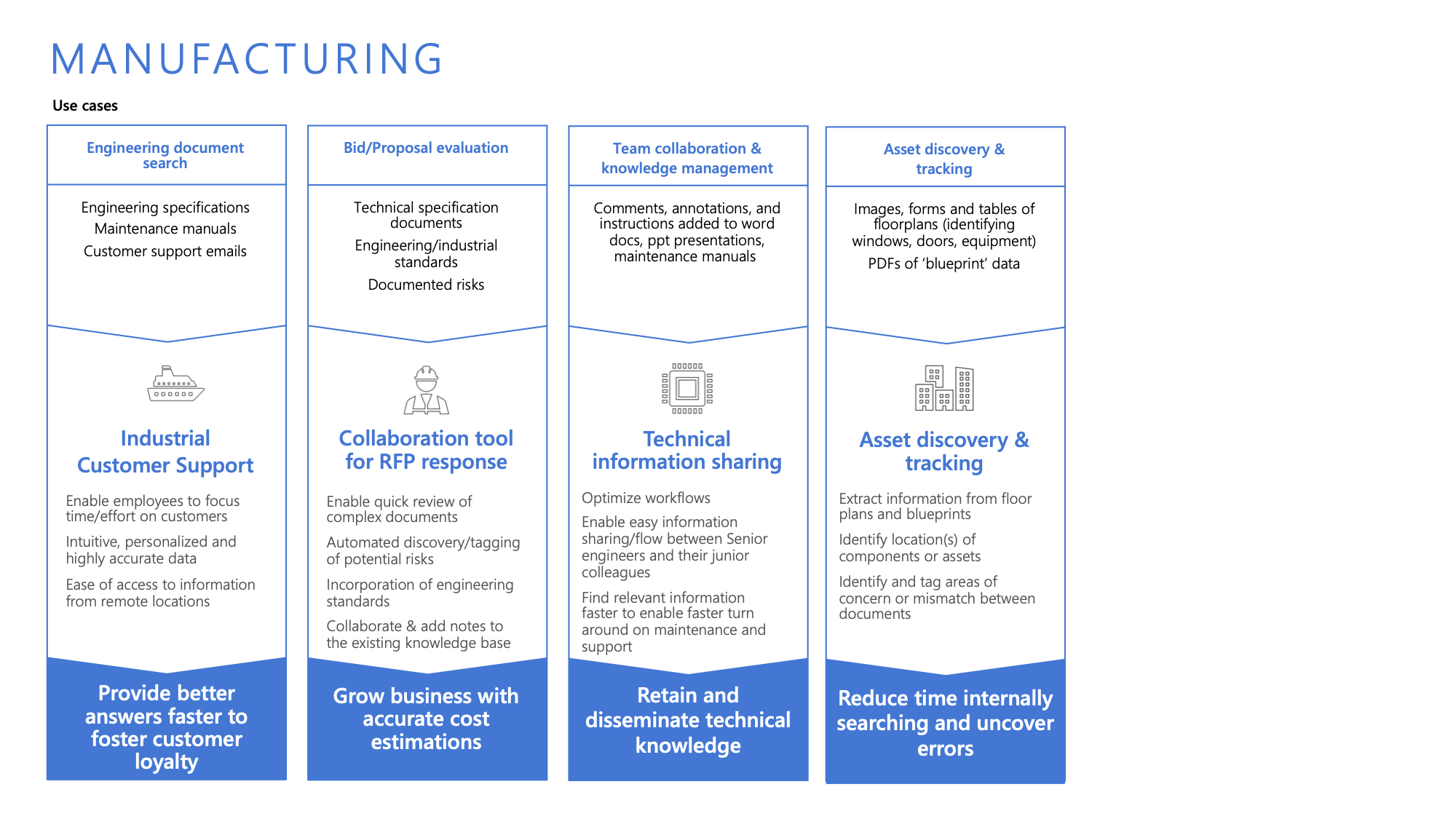 Does your customer have a lot of unstructured data, spread across the company? Get the conversation started around their current pain points and see if they can benefit from a knowledge mining solution. Let’s start with some real world customer cases in three key industries to give you a better understanding of the scenarios.